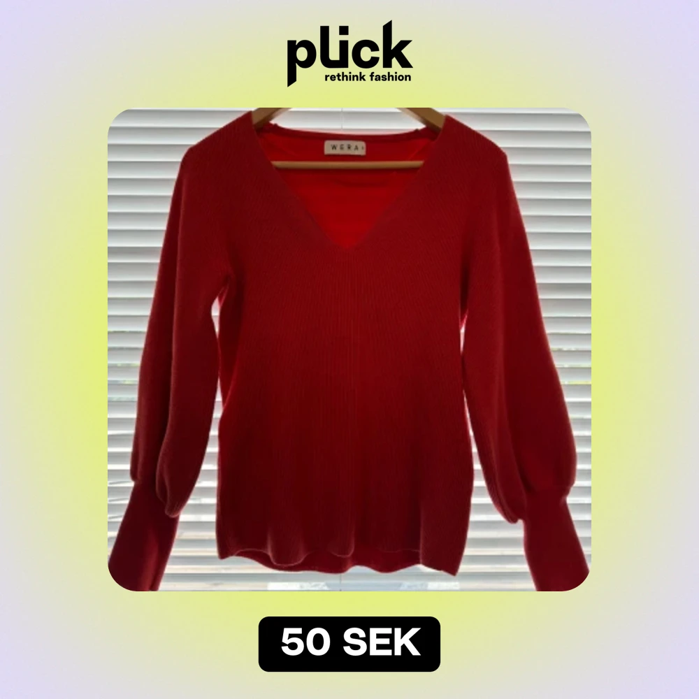 Säljer denna vackra röda tröja ifrån märket WERA, i storlek xs. Tröjan är räfflad och v-ringad, har även väldigt fina ärmar. Väldigt gott skick