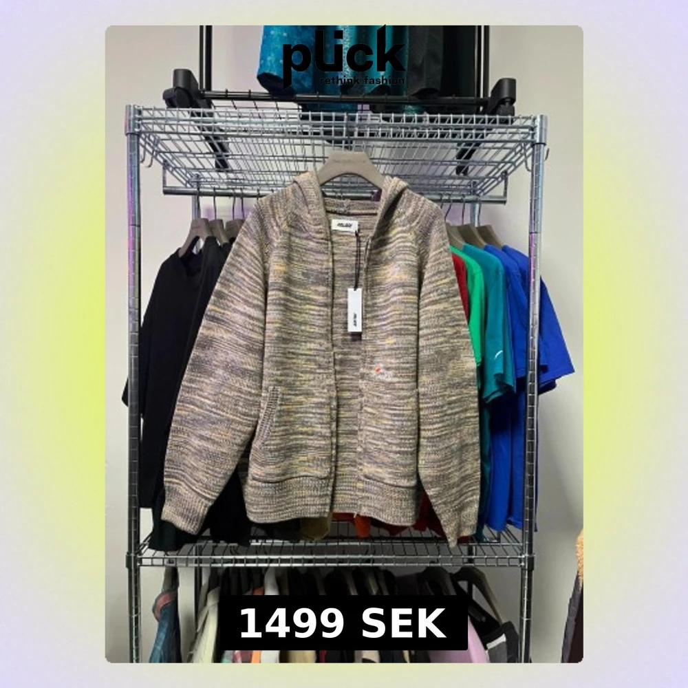 Säljer en stickad hoodie från Palace i melerad beige, grå och gul ton. Tröjan har huva, dragkedja framtill och två fickor. Liten broderad detalj på bröstet. Perfekt för dig som gillar streetwear och vill ha något unikt i garderoben.