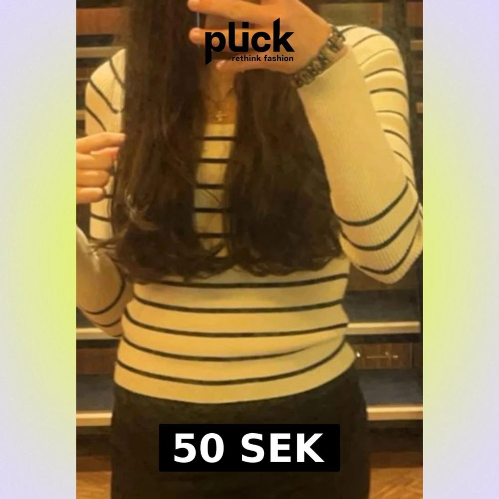 Snygg vit ribbad tröja med svarta ränder och lång ärm. Materialet är stickat och känns mjukt mot huden. Säljs pga ingen användning