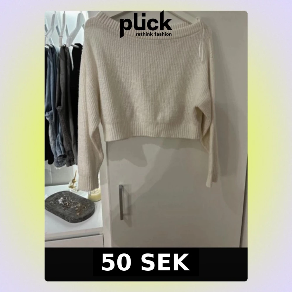 Superfin vit croppad stickad tröja från H&M Divided. Tröjan har bred ribbad kant vid halsen och ärmarna är långa. Perfekt till jeans eller kjol för en chill och snygg look.