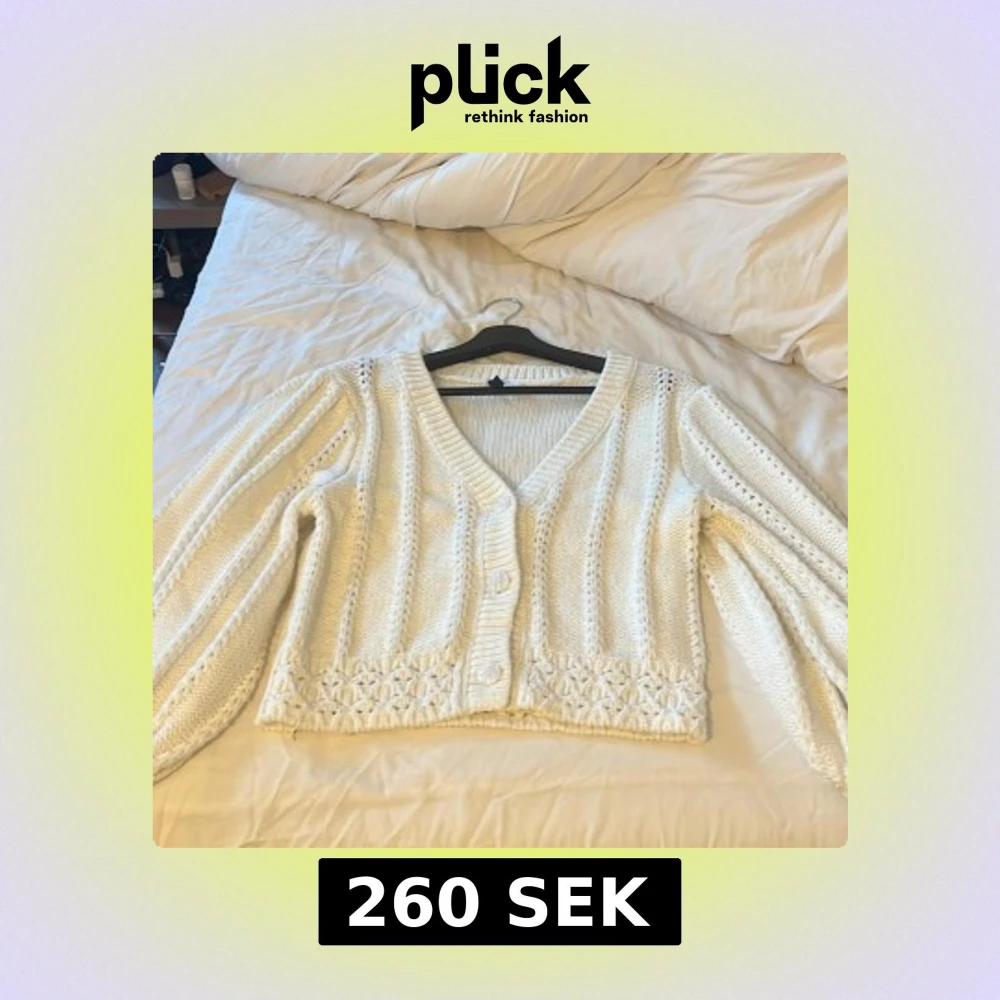 Superfin vit stickad kofta från H&M Divided i storlek XS. Koftan har v-ringning, stora knappar framtill och ett snyggt mönster nertill och på ärmsluten. Den är croppad och har långa ärmar med en mysig, chunky känsla. Perfekt för lager-på-lager-stil! 210kr plus frakt!