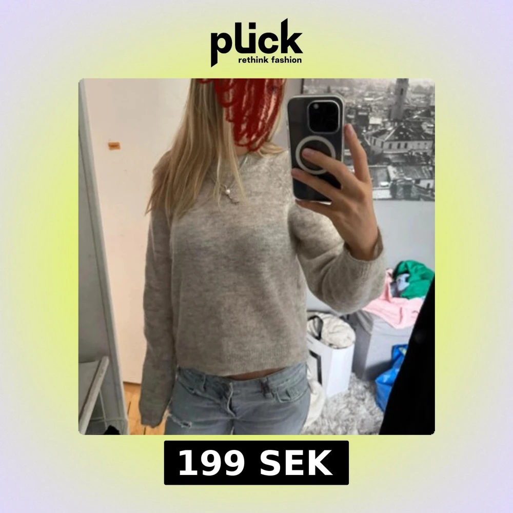 Supermjuk beige stickad tröja, tröjan har en enkel och clean look, perfekt att matcha med jeans eller kjol. Den är lite croppad och har ribbade muddar vid ärmslut och nederkant. Perfekt för lager-på-lager under kyliga dagar.