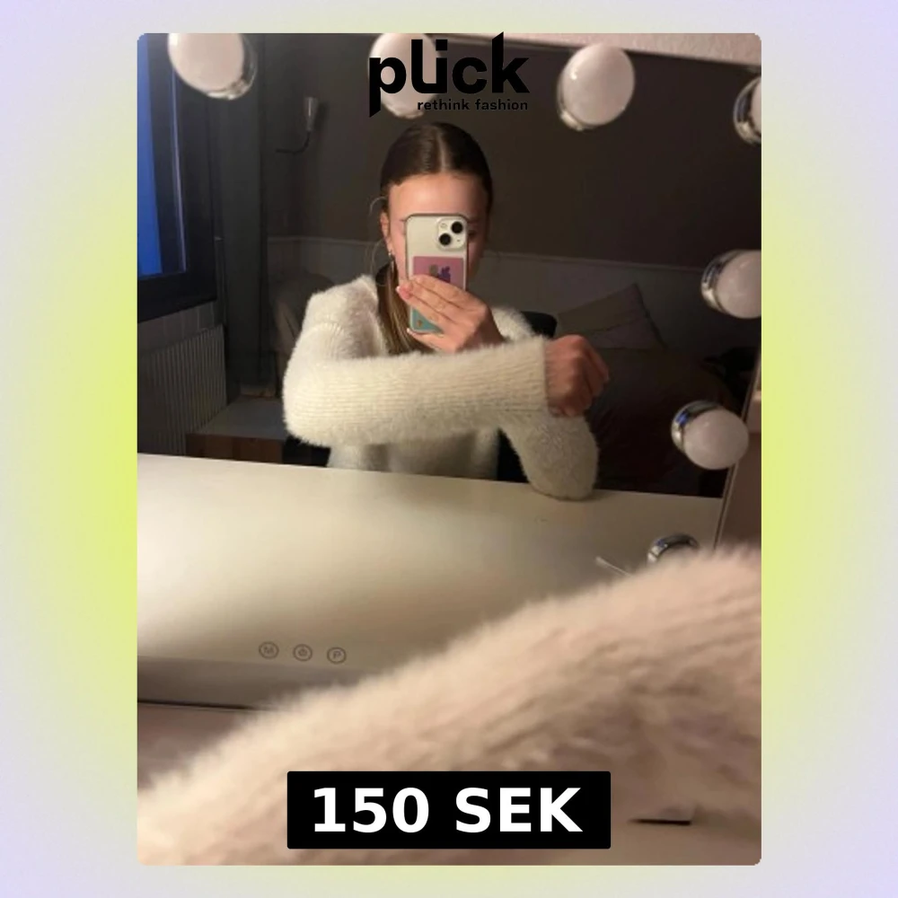 Supermjuk och fluffig vit stickad tröja med lång ärm. Perfekt för kyliga dagar och ger en mysig känsla. Enkel och stilren design som är lätt att matcha med olika outfits. Kan inte märket🥰