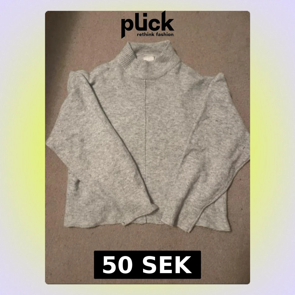 Mysig ljusgrå stickad tröja med hög krage och lång ärm. Tröjan har en rak passform, ribbade muddar och en dekorativ söm framtill. Perfekt för kyliga dagar och enkel att matcha till olika outfits.