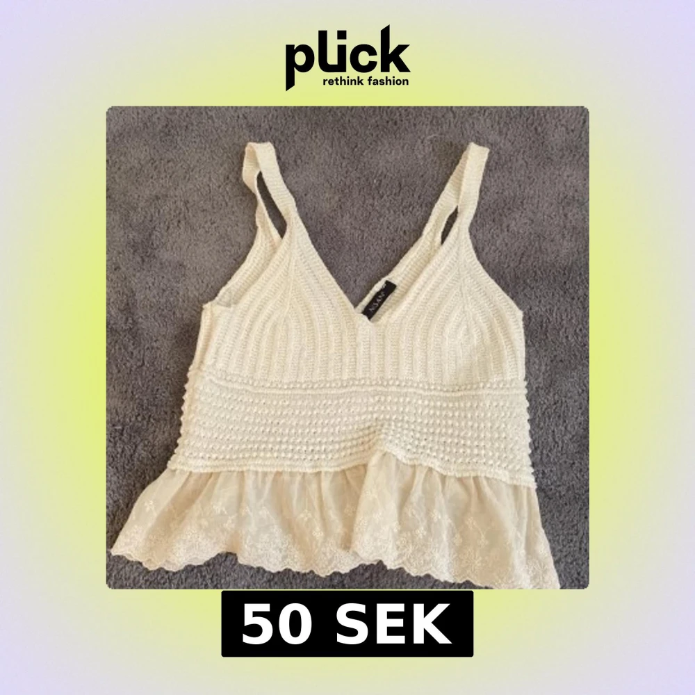 Vit stickad linnetopp med spets