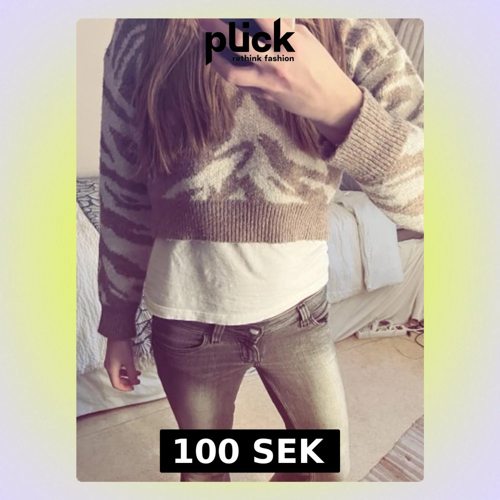 Säljer en croppad stickad tröja i beige och vitt med zebramönster. Skitsnyggt med ett vit linne under 💕🦓