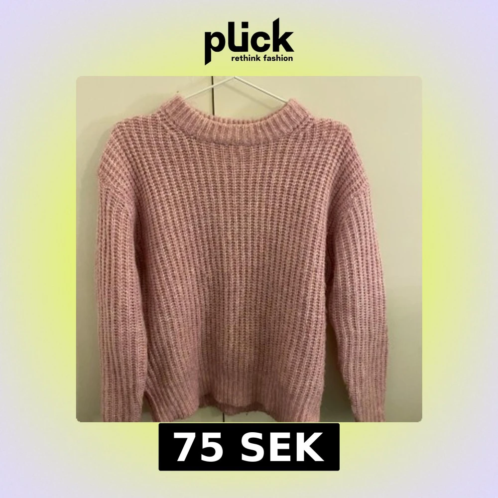 Mysig rosa stickad tröja med lång ärm och ribbad struktur. Perfekt för kyligare dagar och ger en avslappnad look. Passar bra till jeans eller kjol.