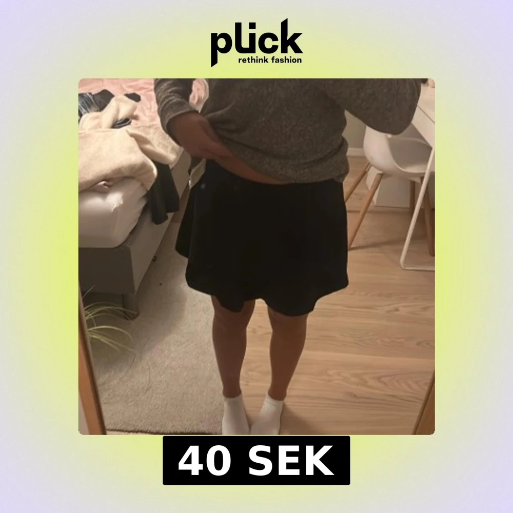 Säljer en svart kjol med en enkel design. Kjolen har en lätt utsvängd form och är perfekt att matcha med både stickade tröjor och crop tops. Resår i midjan.