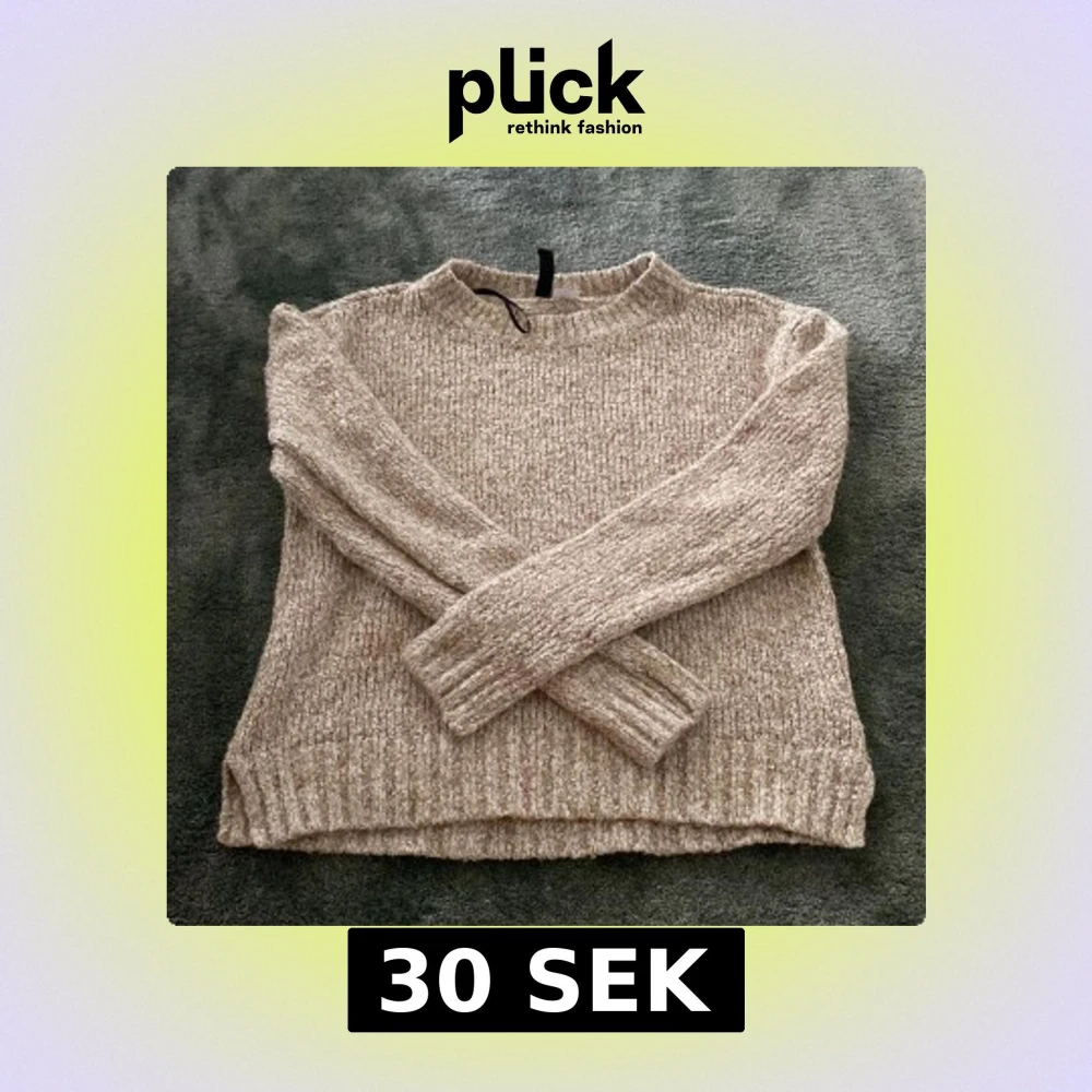 Mysig beige stickad tröja från H&M Divided i storlek XS. Tröjan har en rak passform, ribbade muddar och rund halsringning. Perfekt för lager-på-lager och chill höst- och vinterdagar. Enkel att matcha med jeans eller kjol.