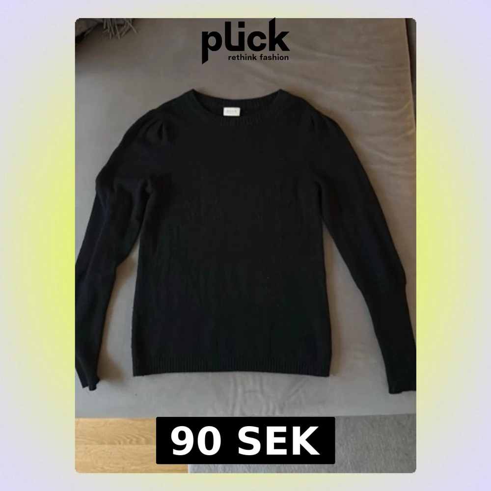 En klassisk svart stickad tröja från Vila med rund halsringning och långa ärmar. Tröjan har en enkel och stilren design med ribbstickade muddar vid ärmslut och nederkant. Perfekt basplagg i garderoben. Xs men mer som en S.