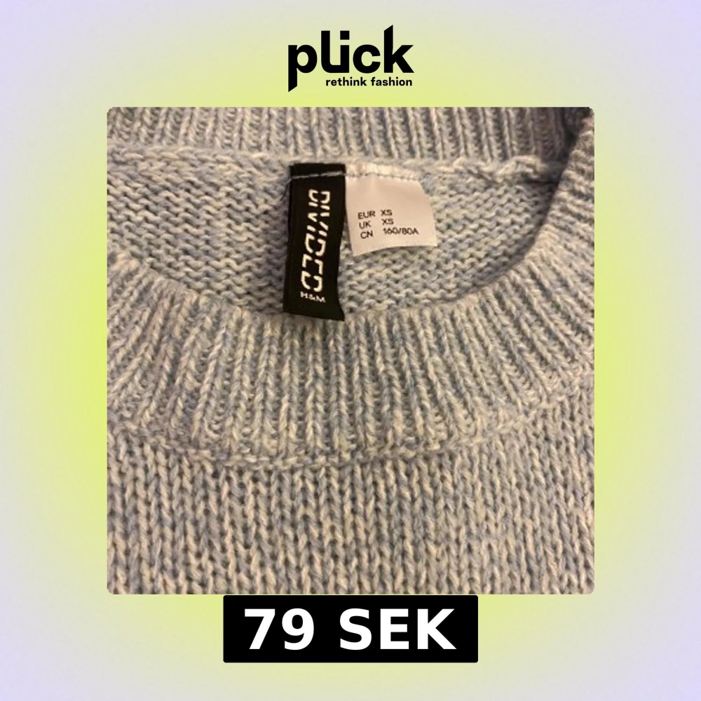 Supermysig ljusblå stickad tröja från H&M Divided i storlek XS. Tröjan har en klassisk rund halsringning, ribbade muddar och är lite croppad i modellen. Perfekt för lager-på-lager och chill dagar.