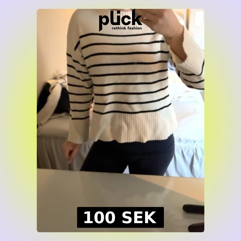 Säljer en vit stickad tröja från lager 157 med svarta ränder! Den är endast använd få gånger💕