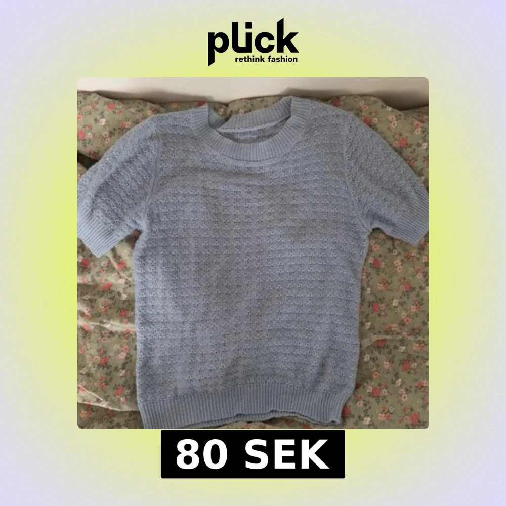 Säljer en ljusblå stickad tröja med korta ärmar och ett fint hålmönster. Perfekt för vår och sommar. Tröjan har ribbade kanter vid hals, ärmslut och nederkant.🫶🏼🌸 Storlek XS och säljer pga att den inte kommer till användning, men så söt!!