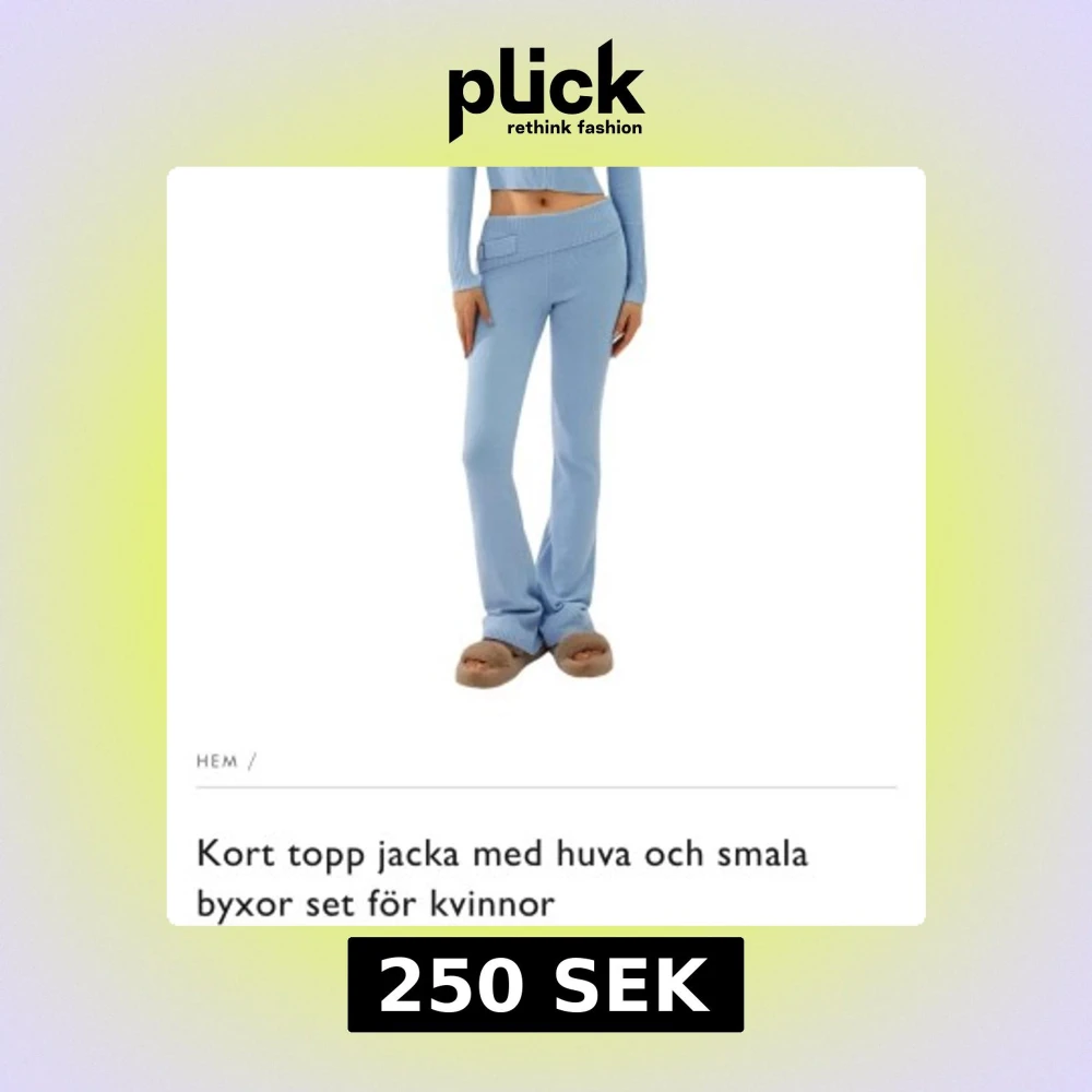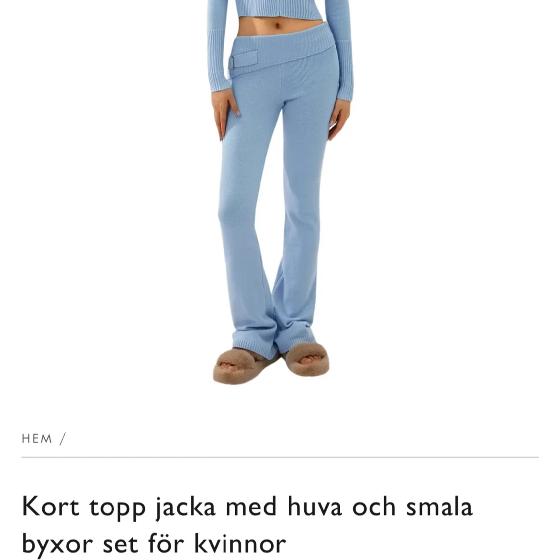 Säljer ett Catania set i blått. Stickade med ribbade detaljer och låg midja. Byxorna är tighta med en snygg passform och har en dekorativ spänndetalj i midjan. Perfekta för en chill och trendig look. Har använts max 5 ggr. Inga defekter🥰