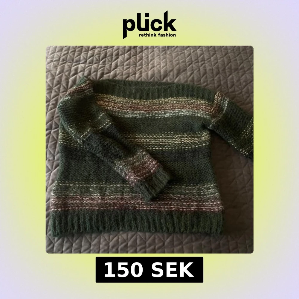 Mysig stickad tröja från Nümph i gröna toner med inslag av vinrött, beige och guldiga metallictrådar. Tröjan har ett randigt mönster, lång ärm och en lite fluffig känsla tack vare mohair och ullblandning. Perfekt för dig som gillar en unik och färgstark look.