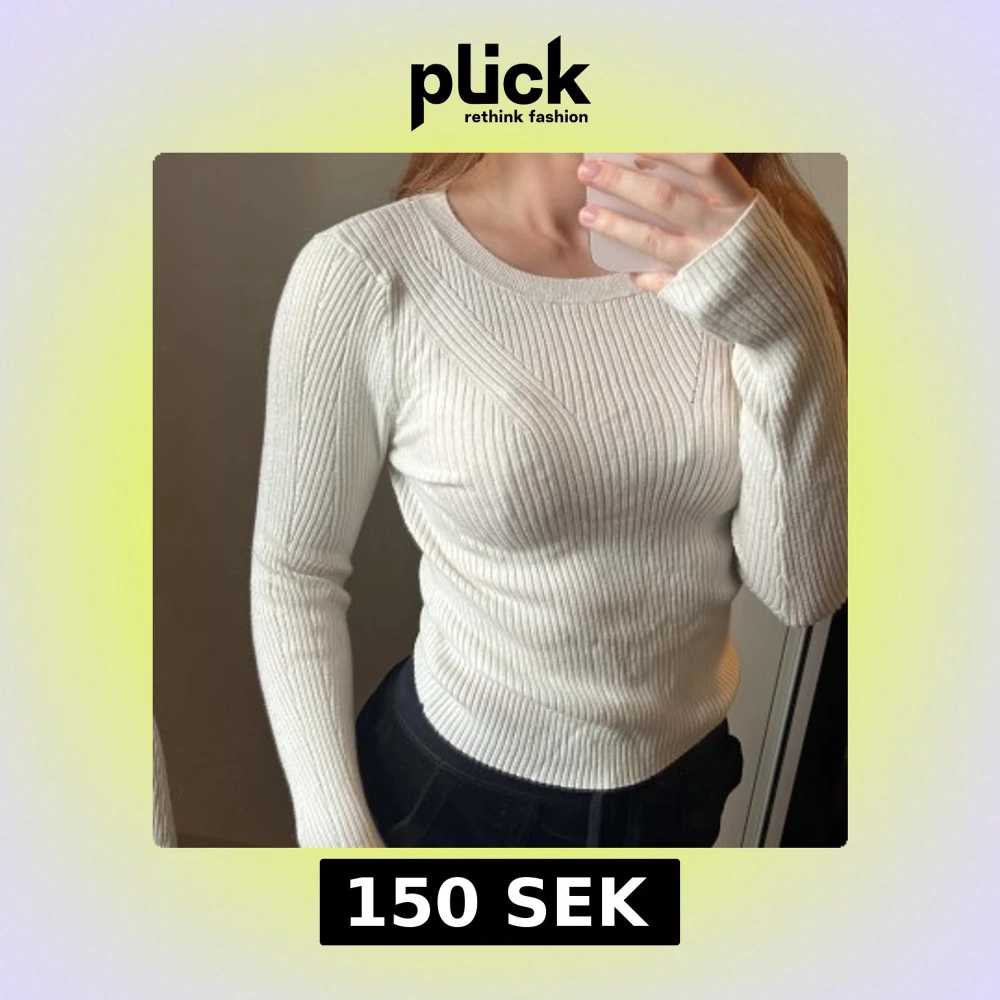 Vit ribbad stickad tröja