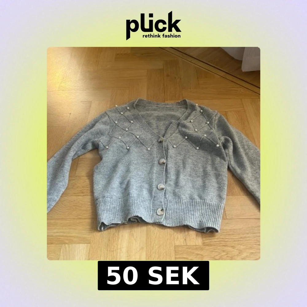 Grå kofta med pärldetaljer