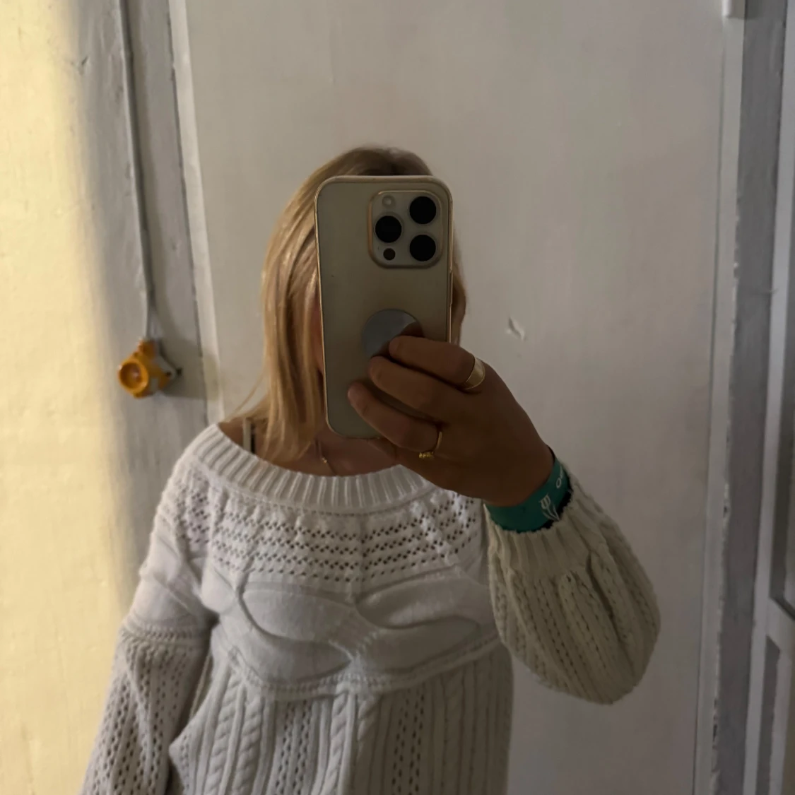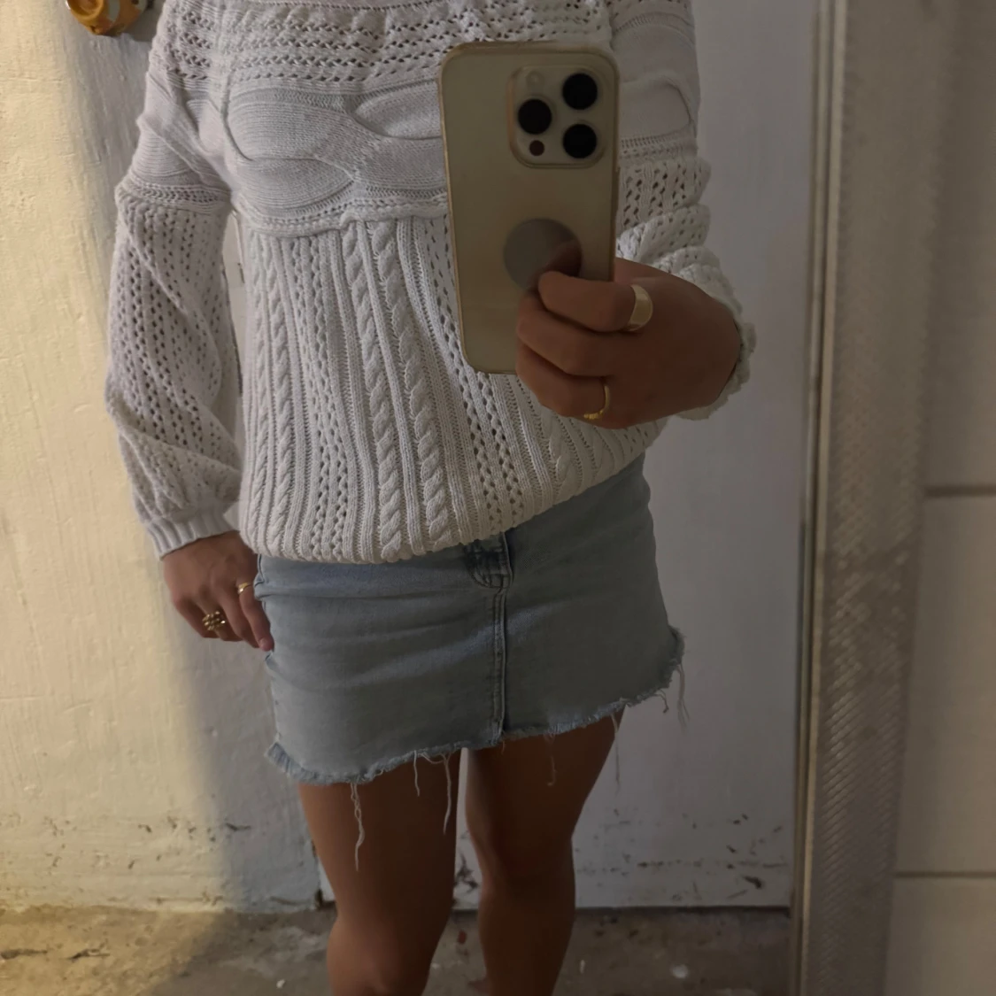 Säljer denna vita stickade tröja, inga lappar alls på tröjan, vet inte var den kommer ifrån. liten i storleken och skulle nog passa en xxs. pris kan diskuteras för jag vill bara bli av med det!!🙌😊😊