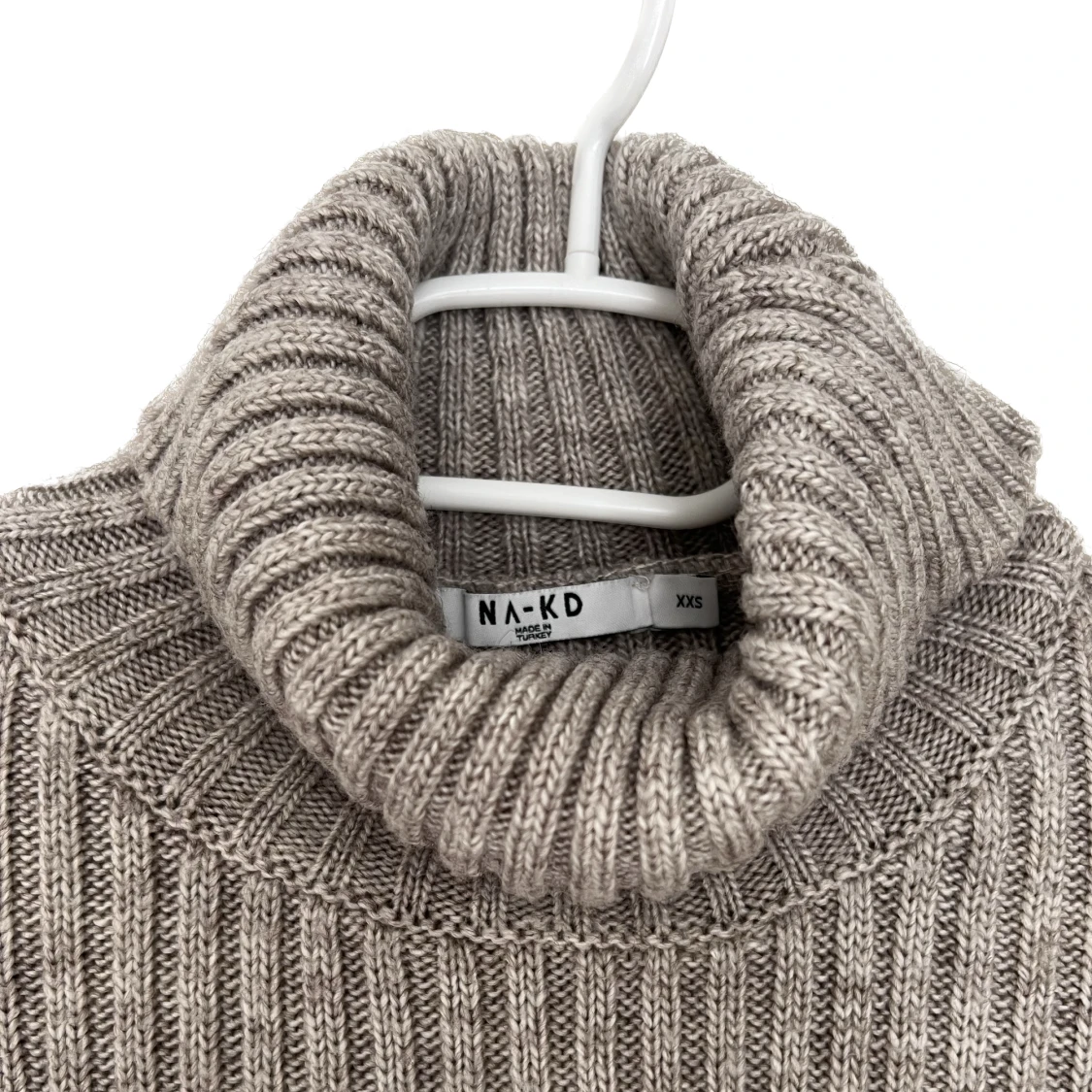 Beige/grå/taupe stickad polotröja från NA-KD! Strl XXS. Använd men fortfarande i fint skick. Perfekt under en skinnjacka nu till våren, eller knuten runt axlarna över en klänning i sommar! Säljer även både skinnjacka & klänning, kolla in min profil!