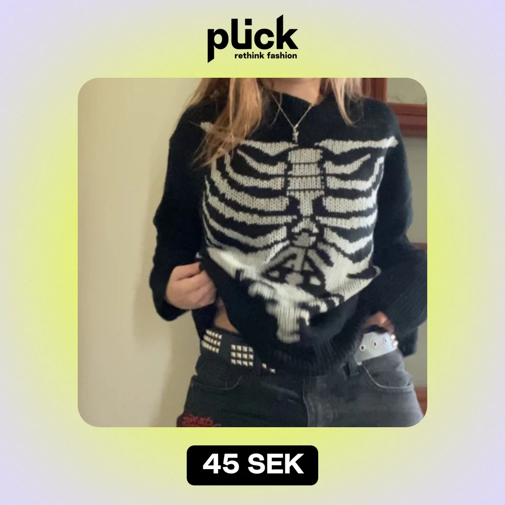 Svart sweatshirt med skelett design. Den är oversize i storlek S men funkar absolut som M eller regular L