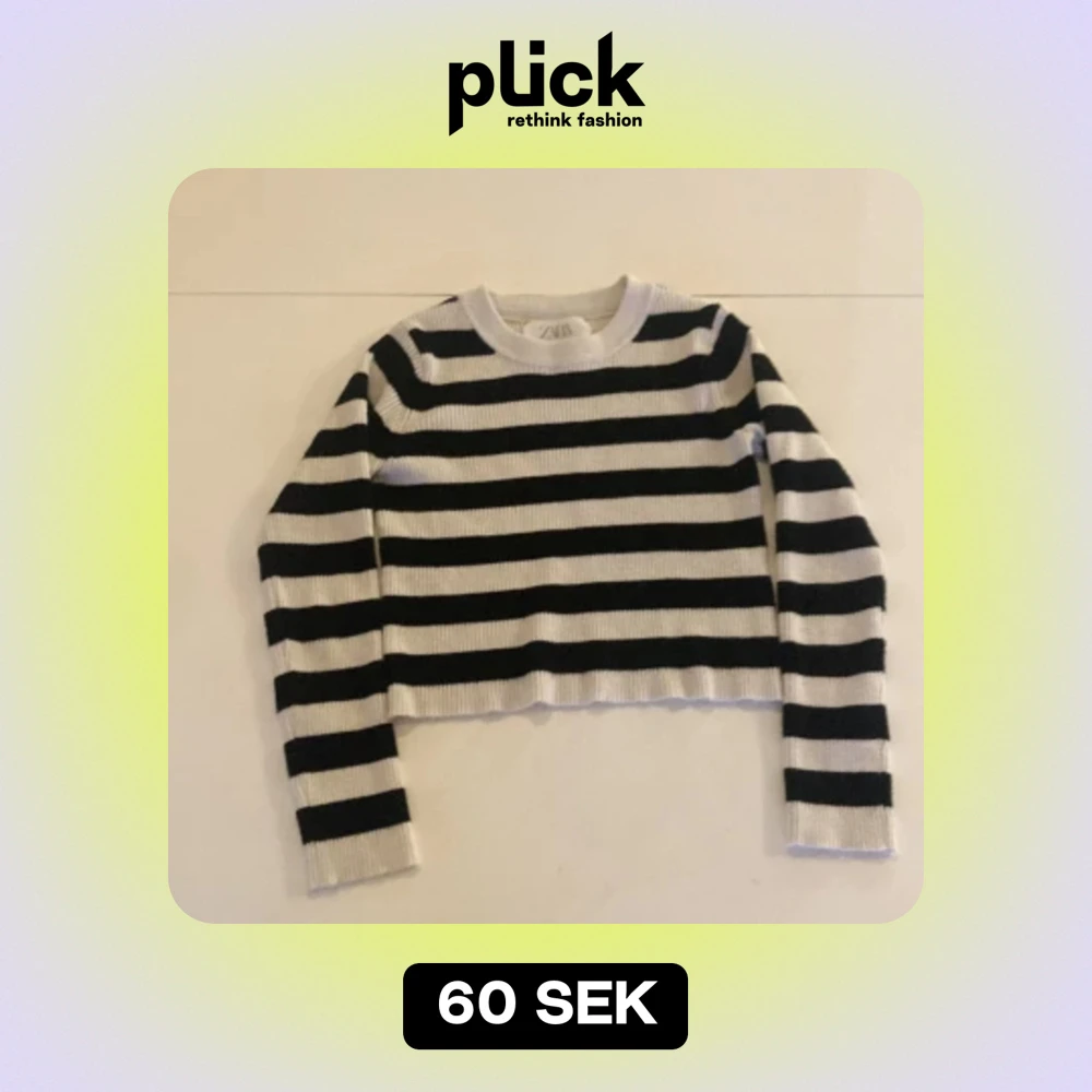 Den är randig i svart och Offwhite . Den är i storlek 140. Den är lite kortare i modellen, men inte en magtröja. Använd ett par gånger.