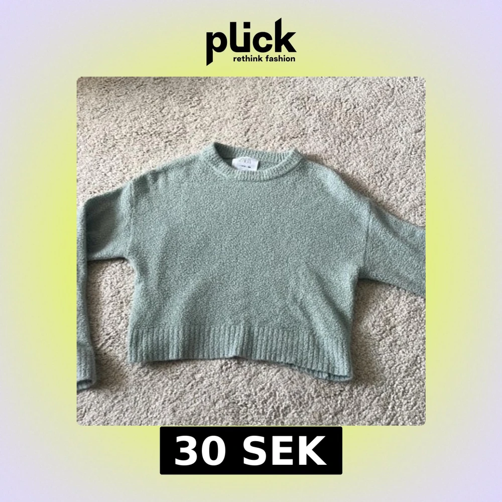 Mysig ljusgrön stickad tröja från Zara med rund halsringning och ribbade muddar vid ärmslut och nederkant. Tröjan har en loose passform och är perfekt för lager-på-lager under höst och vinter. Enkel och stilren design som funkar till allt. Aldrig använd är lite liten i storleken