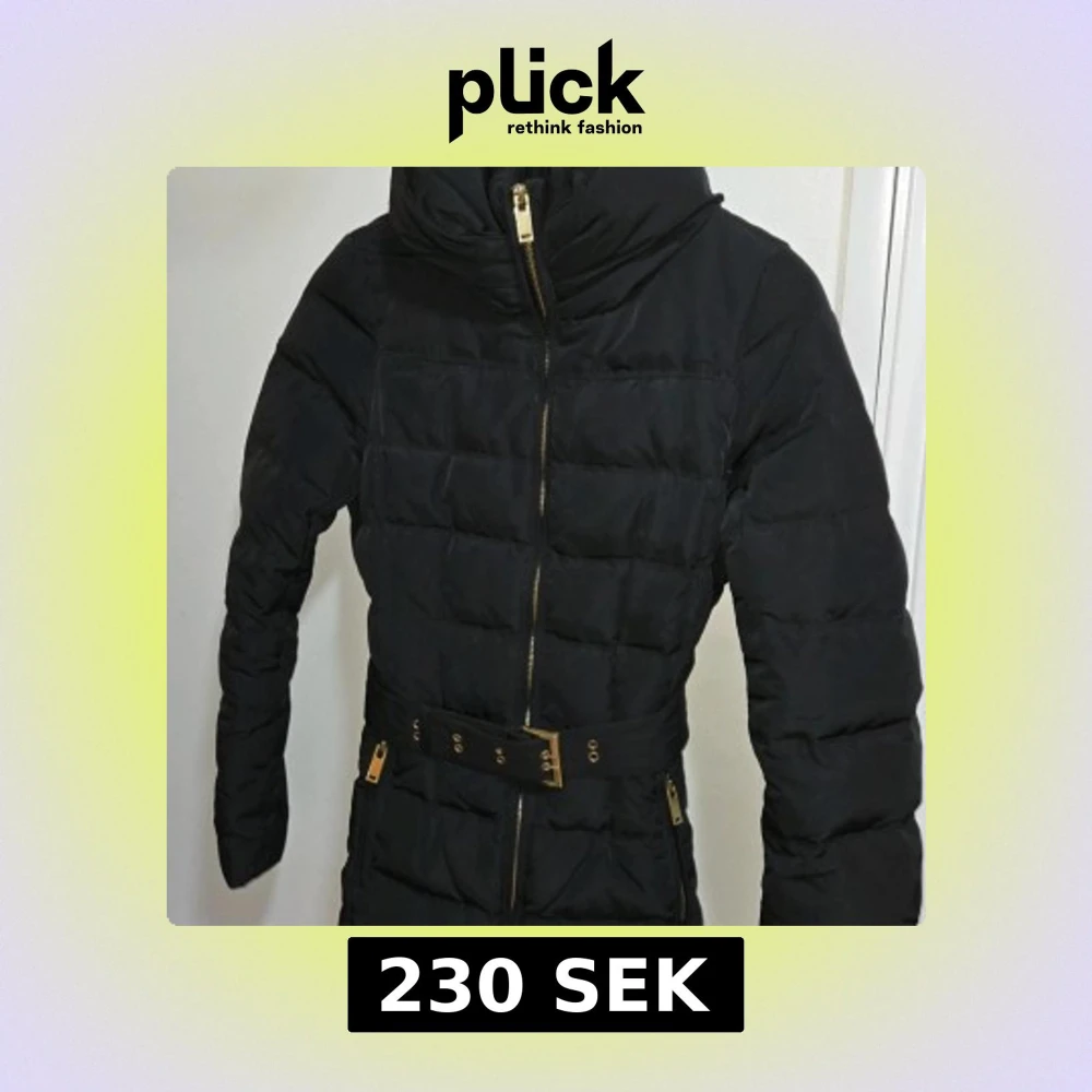 Jackan har en elegant design i svart, perfekt för höst och vinter. Den är fylld med äkta dun och fjäder, vilket ger bra värme utan att bli bylsig. Nyckelfunktioner: Märke/Modell: Zara Basic, Puffad jacka. Fyllning: Äkta dun (70% vitt anddun, 30% fjäder). Mycket varm! Design: Figurnära passform, stor, stickad krage (som ger extra värme och stil), och snyggt, avtagbart bälte Detaljer: Alla dragkedjor och spännen är i guldfärgad metall. Mått (Ca): Total längd ca 67 cm.