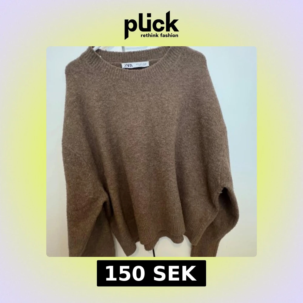 Mysig brun stickad tröja från Zara med rund halsringning och avslappnad passform. Perfekt för kyliga dagar och enkel att matcha med olika outfits. Ribbstickade muddar vid ärmslut och nederkant.