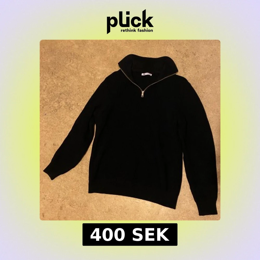 Säljer en stilren svart stickad tröja från Zara med dragkedja vid halsen. Perfekt för kyligare dagar med sin höga krage och långa ärmar. Tröjan är både bekväm och snygg, ett måste i garderoben! Är lite använd men gott som ny!