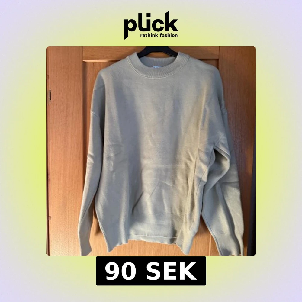 Säljer en stilren grön stickad tröja med rund hals och långa ärmar. Perfekt för kyligare dagar och enkel att matcha med olika outfits. Tröjan har en klassisk design med ribbade muddar vid ärmslut och nederkant.