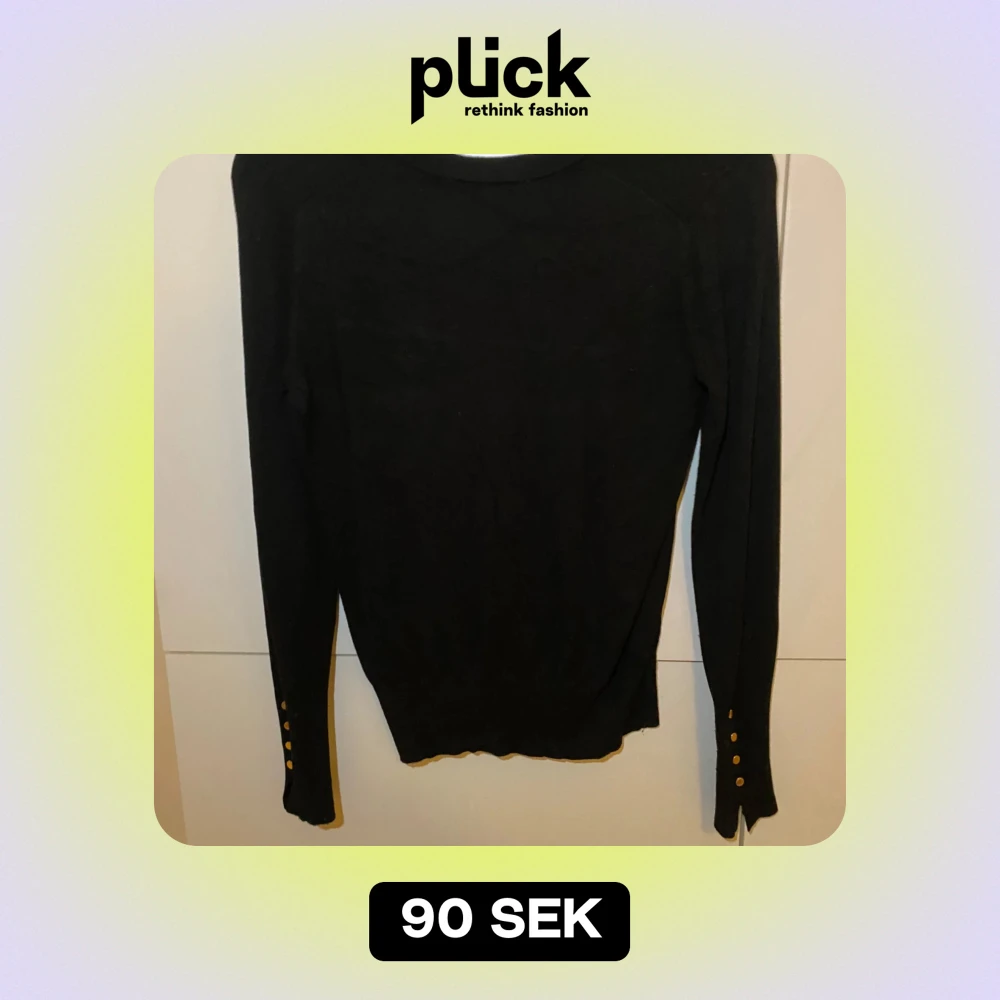 Svart stickad från ZARA, tunn men varm. Guldknappar på ärmens slut & även en liten slits.