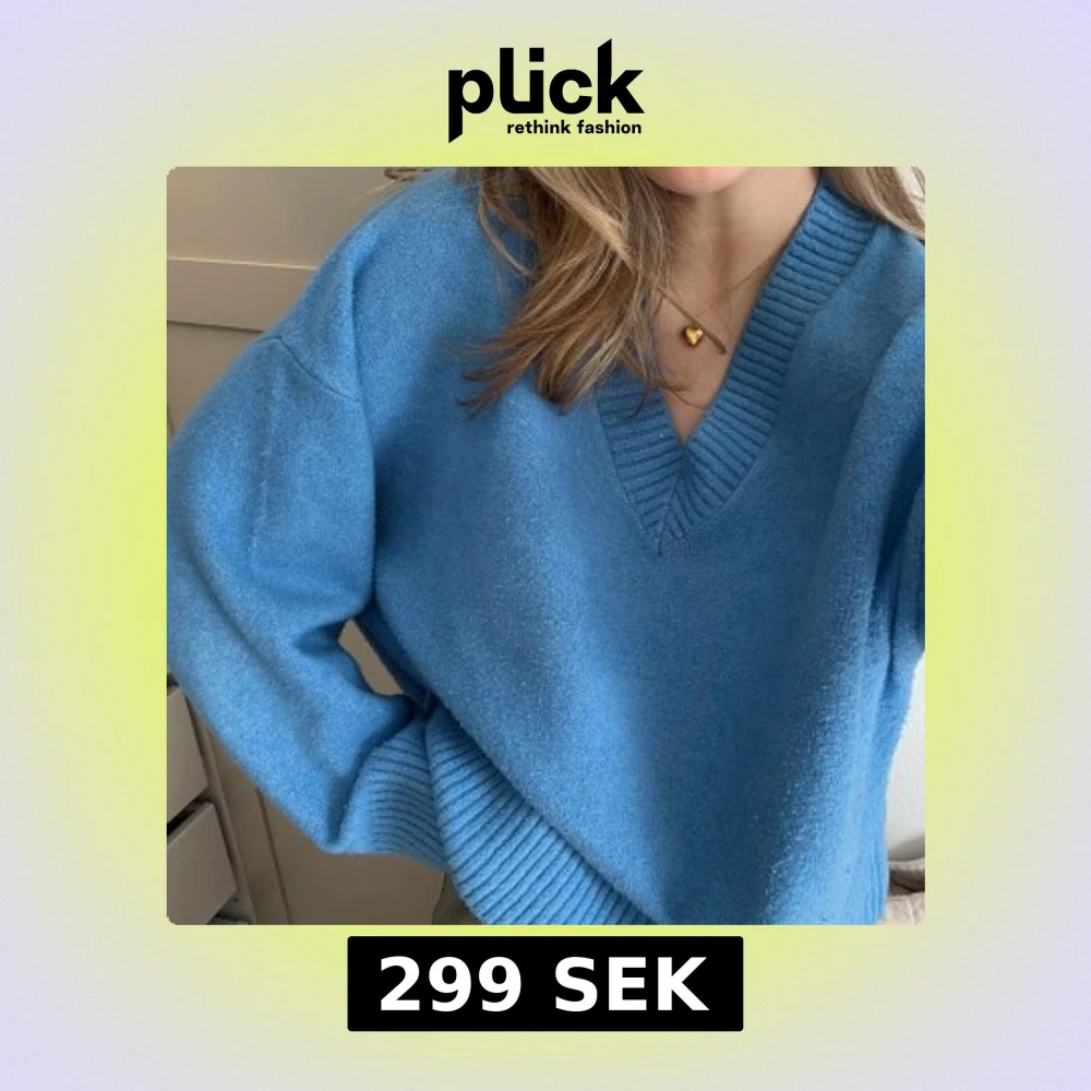 Säljer en mysig blå stickad tröja från Zara med v-ringad hals och ribbade detaljer vid ärmslut och nederkant. Perfekt för kyliga dagar. 💙