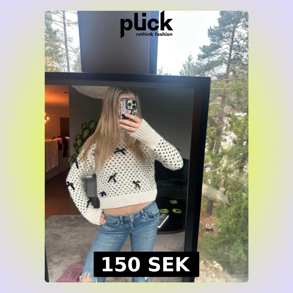 Superfin vit stickad tröja från Zara med svarta detaljer och små rosetter över hela tröjan. Croppad modell med lång ärm och ribbade muddar. Perfekt för dig som gillar unika detaljer och vill ha en mysig men snygg look.