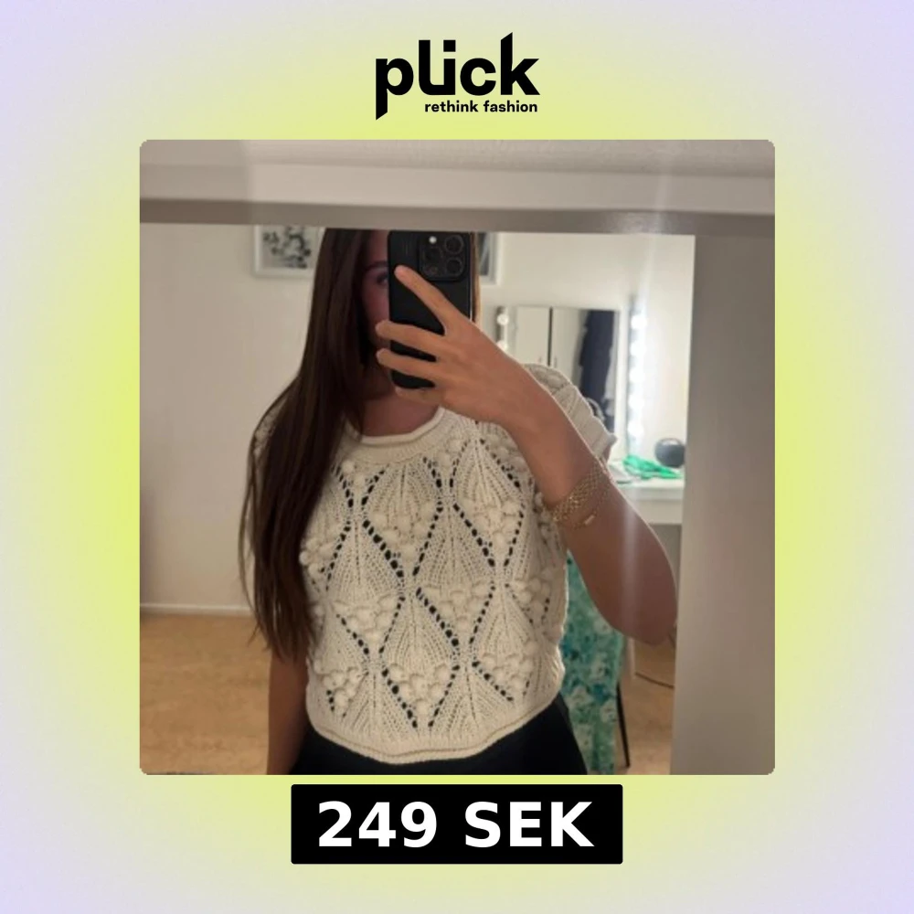 Superfin vit stickad topp med korta ärmar och unikt hålmönster i geometriska former. Croppad modell som ger en trendig vibe och passar perfekt till både jeans och kjol. Mjuk och bekväm, perfekt för vår och sommar.