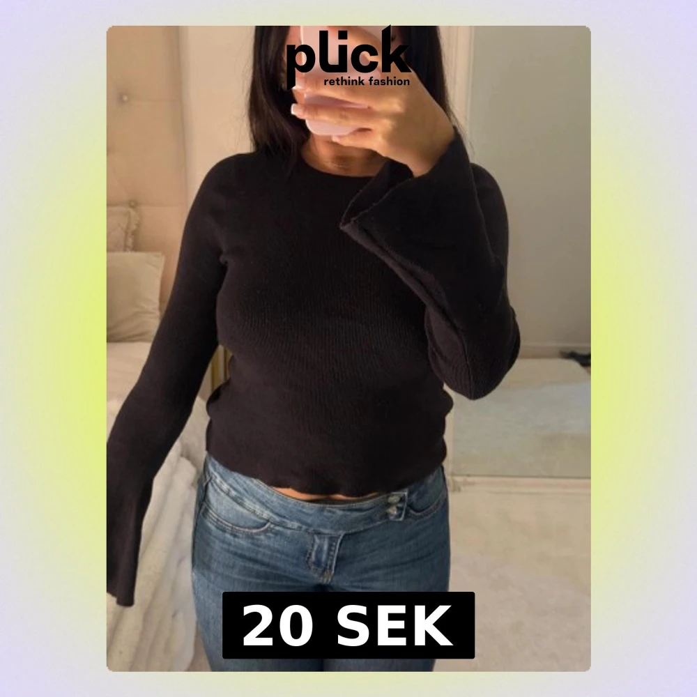 Svart stickad tröja med croppad passform och långa, lätt utsvängda ärmar. Enkel och stilren design med rund halsringning, perfekt för dig som gillar en clean look. Mjuk och skön kvalitet som känns nice mot huden.