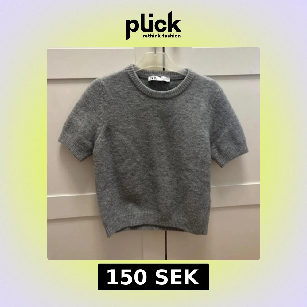 Mysig grå stickad tröja från Zara med korta ärmar och rund halsringning. Tröjan har en enkel och stilren design med ribbade kanter vid ärmslut och nederkant. Perfekt att styla med jeans eller kjol för en chill look. Köpt förra året använd cirka 5 gånger !🩶🩶 skicka gärna prisförslag 💞