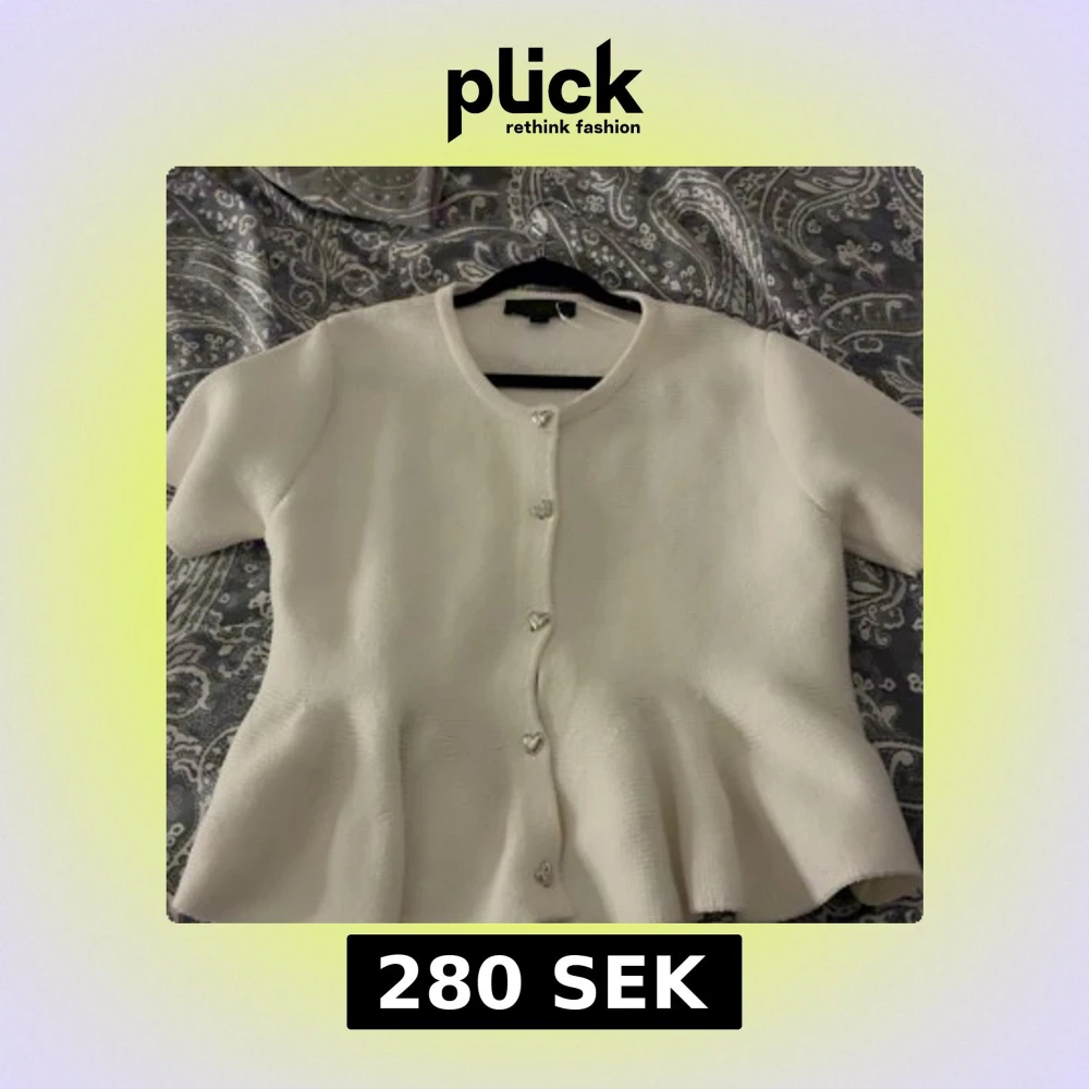 Supersöt vit stickad blus från Zara med korta ärmar och peplumformad nederdel. Blusen har runda hjärtformade knappar framtill. Har aldrig använt den. Passar även storlek M också xs om du vill ha en liten oversized look