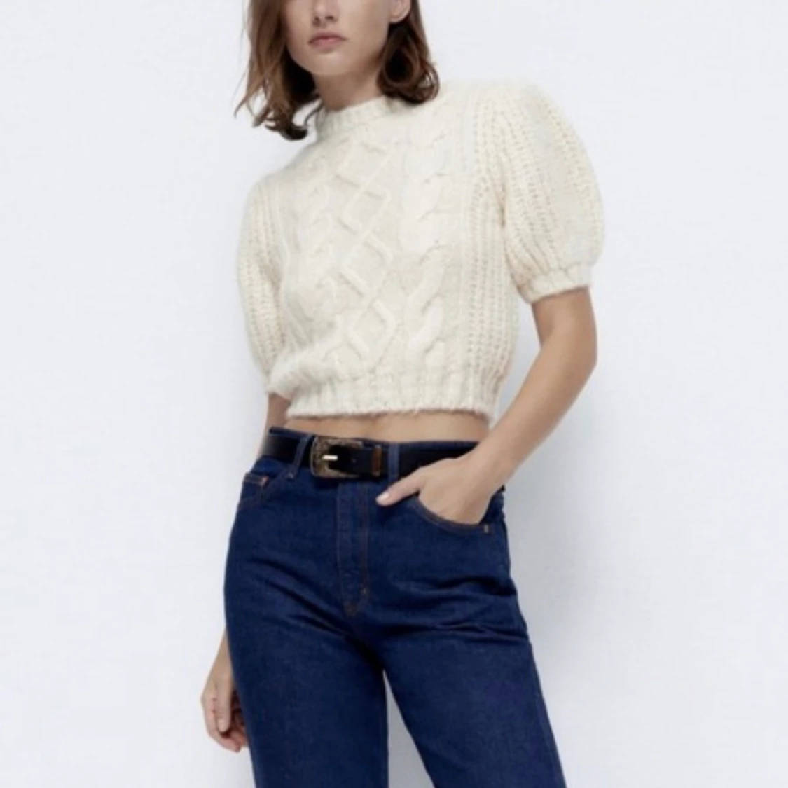 Jätte söt tröja från zara med lite kortare ärmar (aldrig använd) väldigt liten i storleken den är storlek L men skulle säga mer som S💕