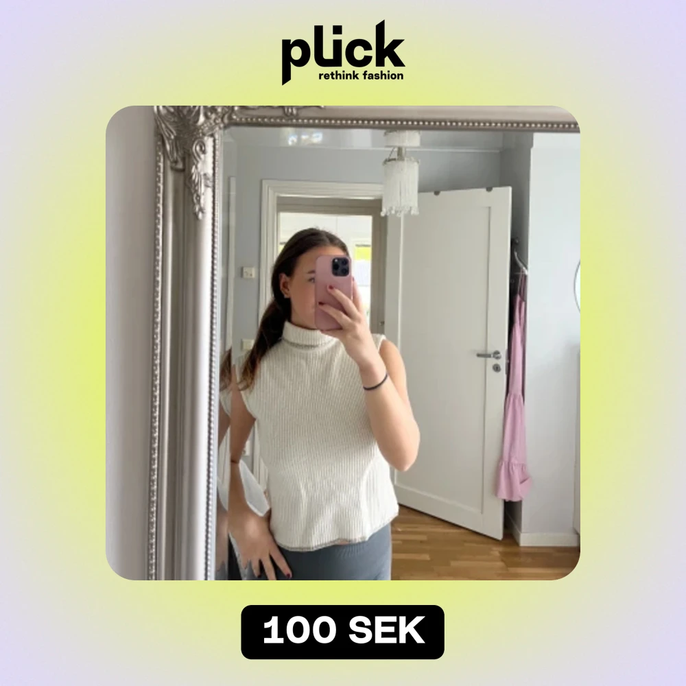 Stickad tröja med polo, diskret glitter på, fina detaljer vid kragen o längst ner. Okänd storlek men skulle uppskatta till en S