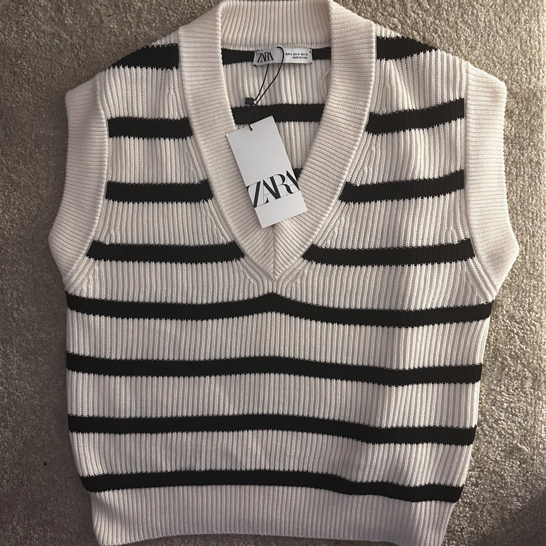 Jätte snygg randig ”väst” från Zara🤩🤩🙌🏼 Köpt för ca 2 år sen men aldrig använt så lappen sitter kvar. Helt slutsåld!! Originalpris-359kr. Billigare frakt på köp nu!