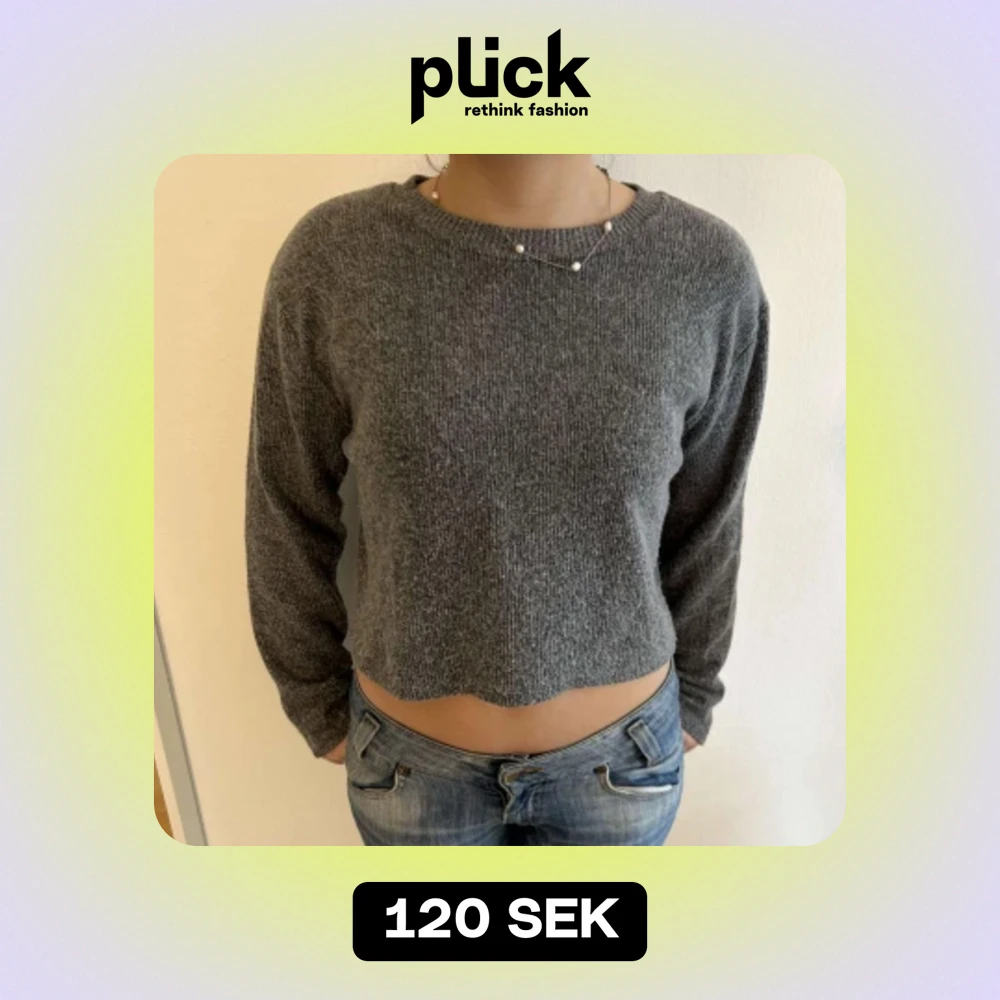 Superfin grå stickad och Croppad tröja!🌪️