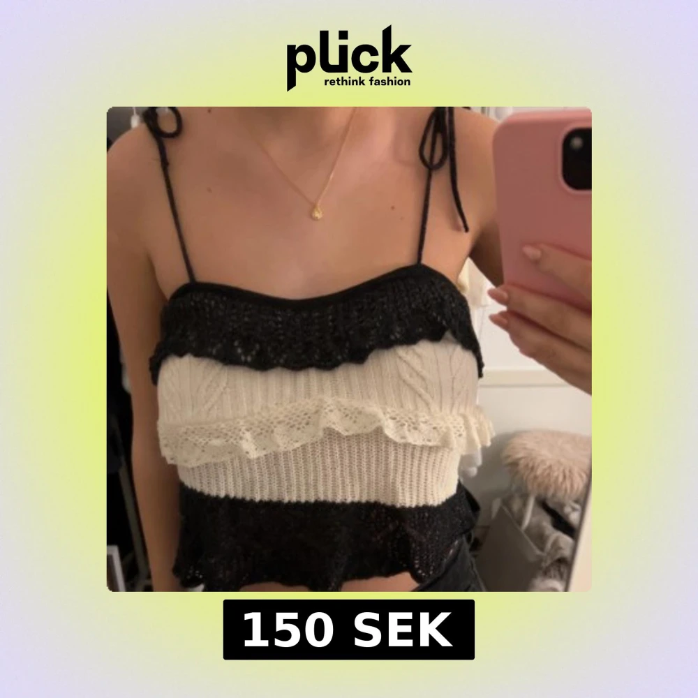 Populär topp från Zara i svart/vit. Toppen är stickad med volangdetaljer och smala axelband som man knyter själv. Finns ej kvar på Zaras hemsida. Storlek S.💓