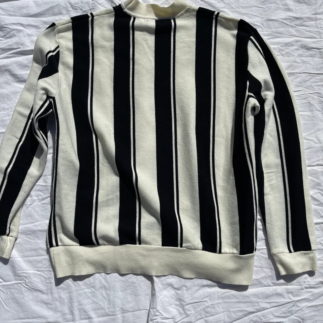 Zara tröja med vertikala ränder. En bröst ficka på vänster sida. Tröjan har en låg polo krage. Säljer den för 150kr Finns att hämta i Landvetter eller kan skickas med PostNord spårbart paket.