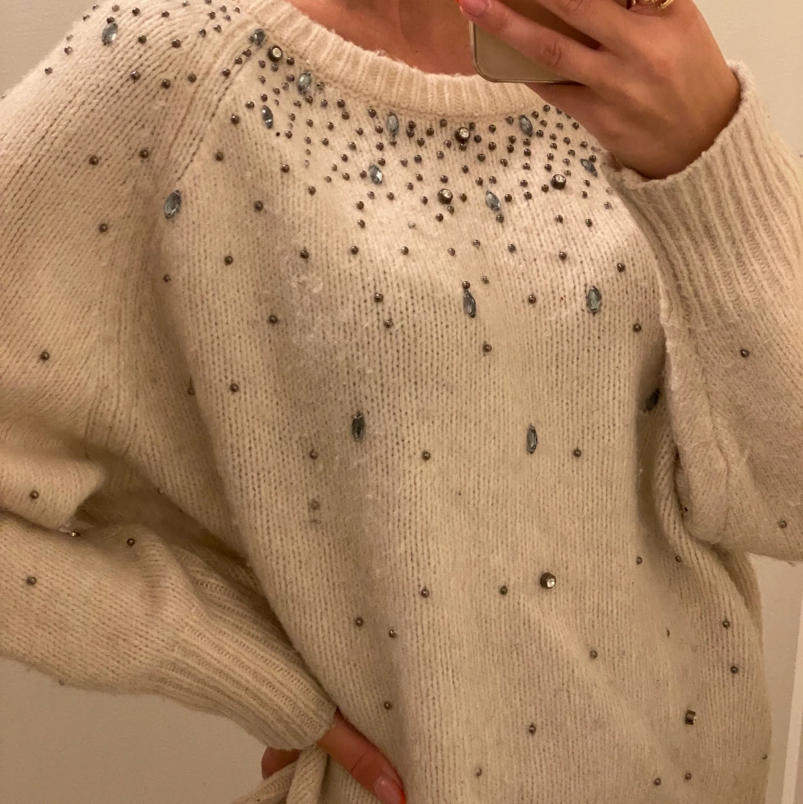 Stickad tröja från Zara i storlek S. Fina detaljer. Lite nipprig där av priset. Kan skicka men då får köparen stå för frakten. Annars möts jag upp på Östermalmstorg 🤍 65% acryl 30% nylon 5% ull