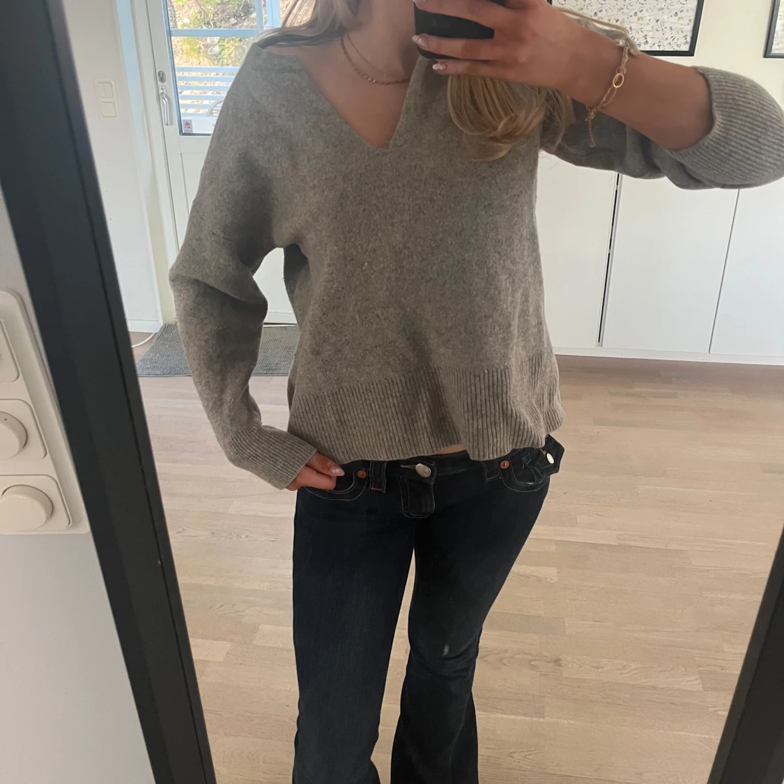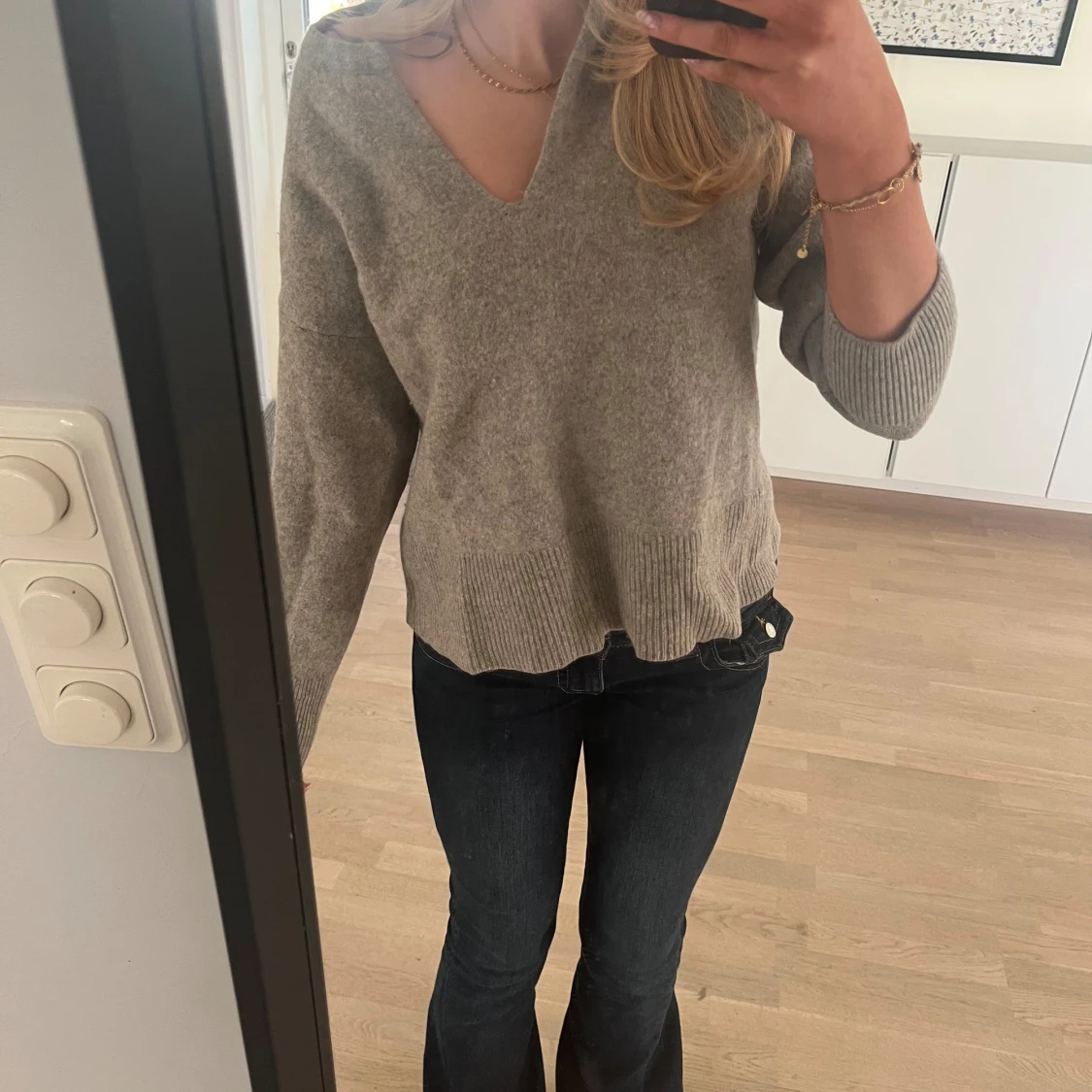 Säljer denna grå/beiga tröja från Zara, den har även en superfin v-ringning och är nästan nyskick