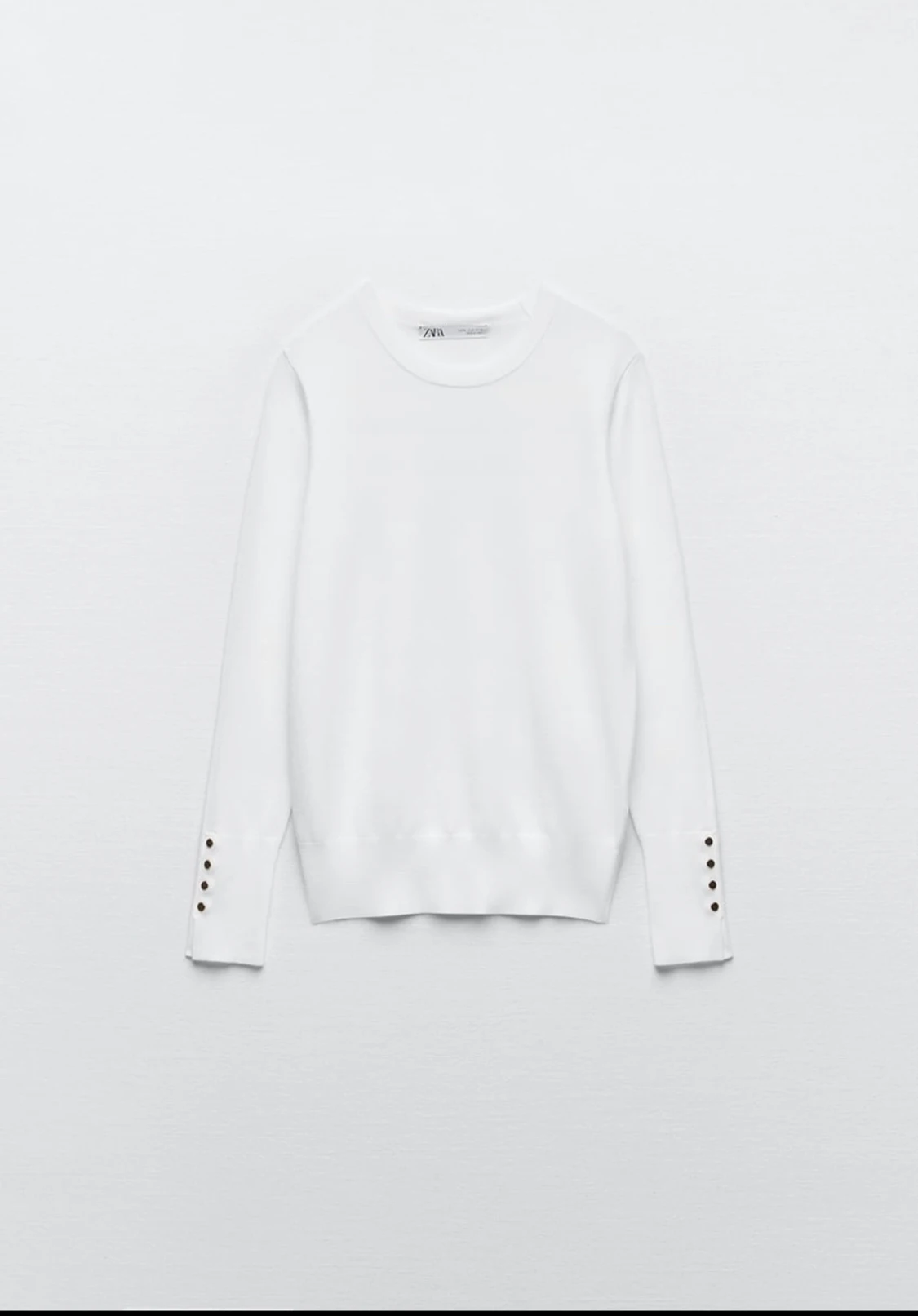 Stickad bas tröja från zara. Vit med guld knappar💕 väldigt sällan använd🦋 nypris 299kr❤️ köparen står för frakten