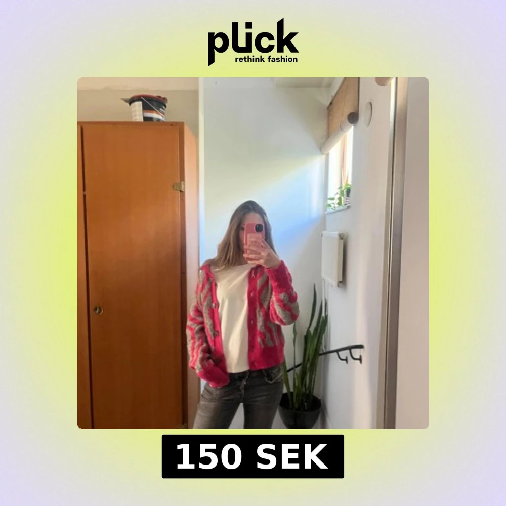 Cool och unik kofta från Stories i storlek S. Koftan är i rosa och grått zebra mönster och perfekt för att liva upp garderoben med lite färg!
