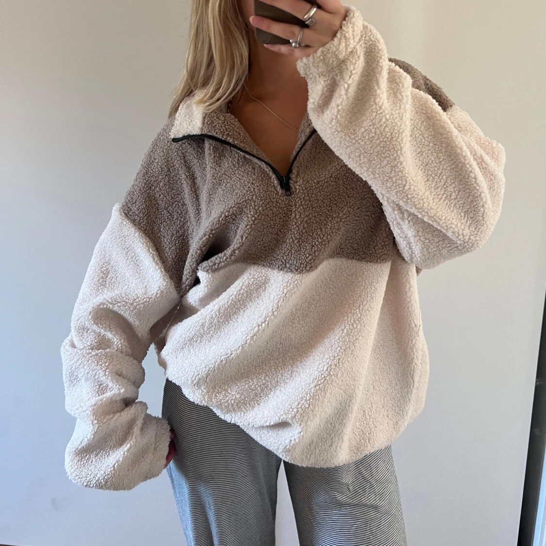 Mysig zip up i teddy material, uppskattad storlek XL🤎🫧