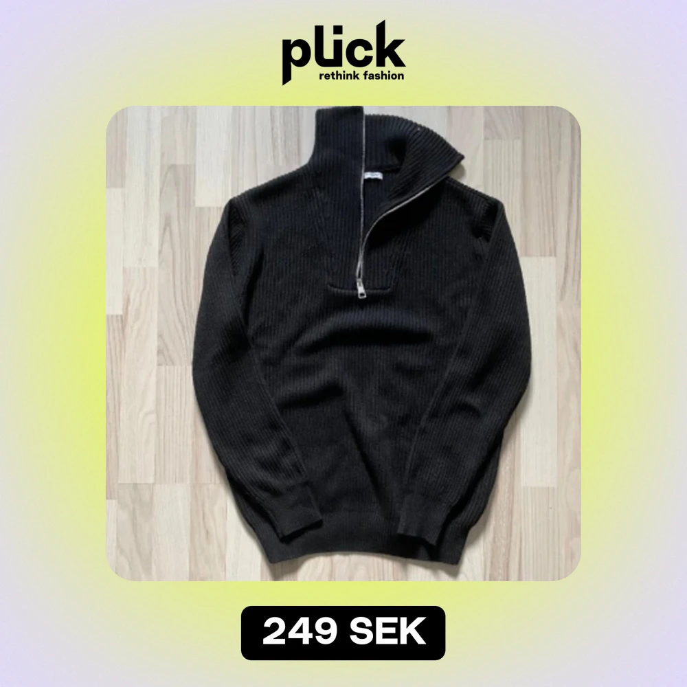 Svart stickad Zara quarter-zip i storlek medium. 53% polyester, 20% akryl, 20% nylon & 7% ull blend. Silvrigt blixtlås av okänt märke. För mått/fler bilder skriv privat.