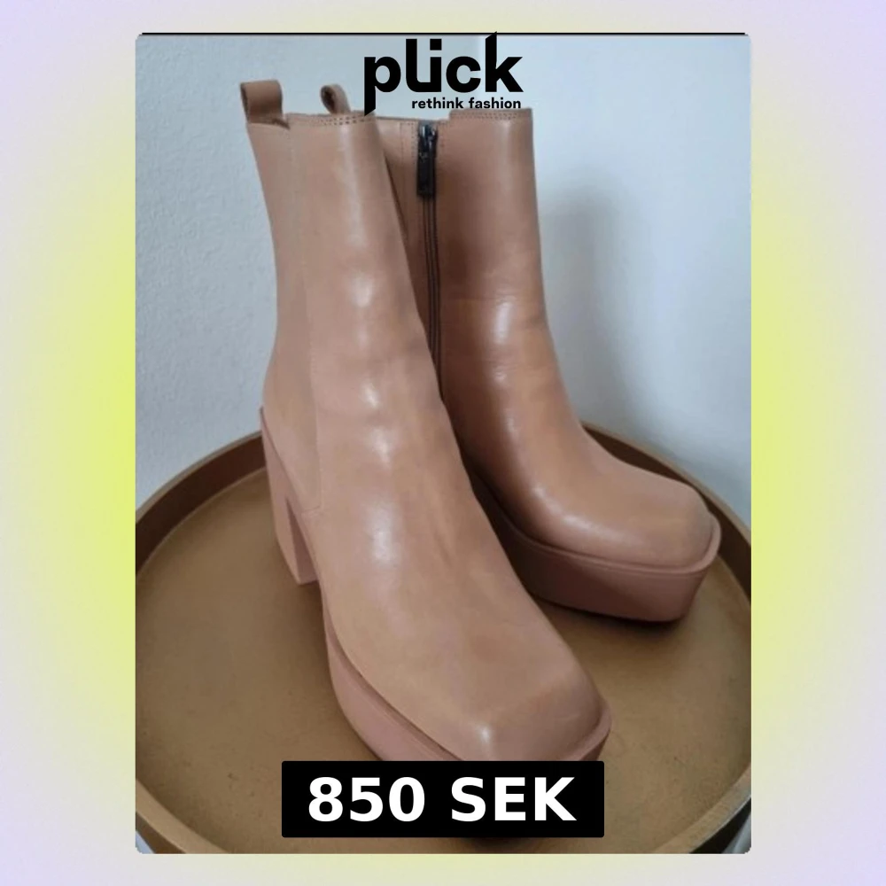 Warm tan coloured leather tamaris platform boots. I have only worn them twice, and only indoors. There are some marks on the leather (see pictures), but they are barely noticeable.